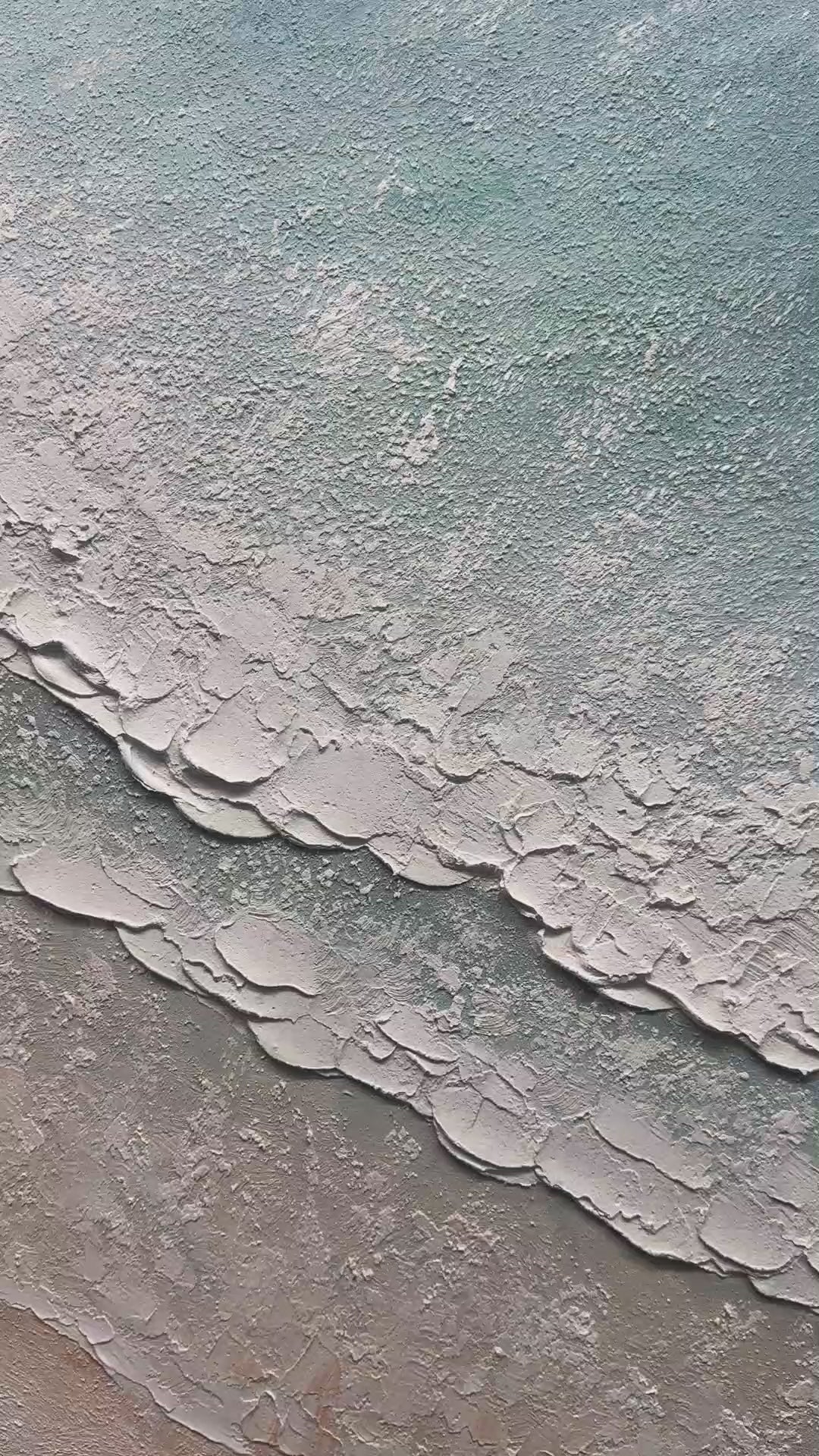 Gentle Beach and Ocean Abstract - Blue White Beige Textured Art Oil Painting #JJ 116