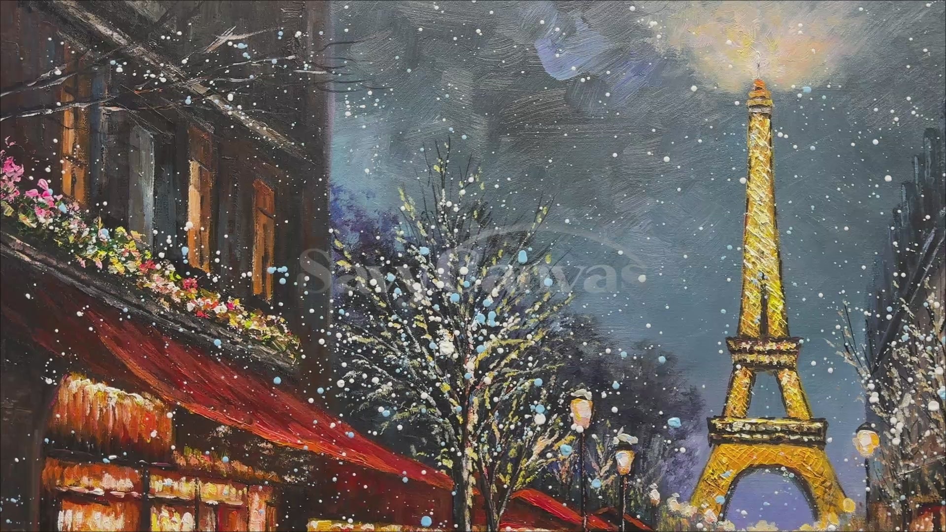 Paris Winter Night Snow Painting, Modern Romantic City #TB 081